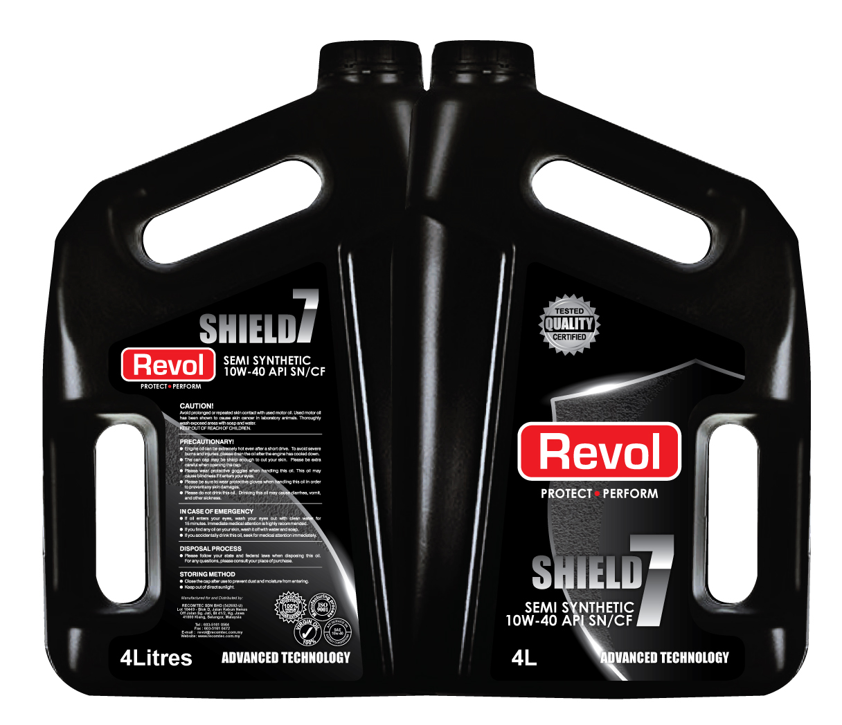 Revol Shield 7 is a semi-synthetic motor oil that has been scientifically formulated to provide your vehicle with the protection and performance it deserves. The use of quality base fluids coupled with cutting-edge additives provides your engine with superior cleansing properties, increased wear protection for critical engine parts and assists in the reduction of deposit and sludge formation.
